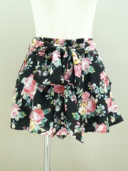 黒の花柄で大人可愛い風に揺れるフレアーショートパンツ