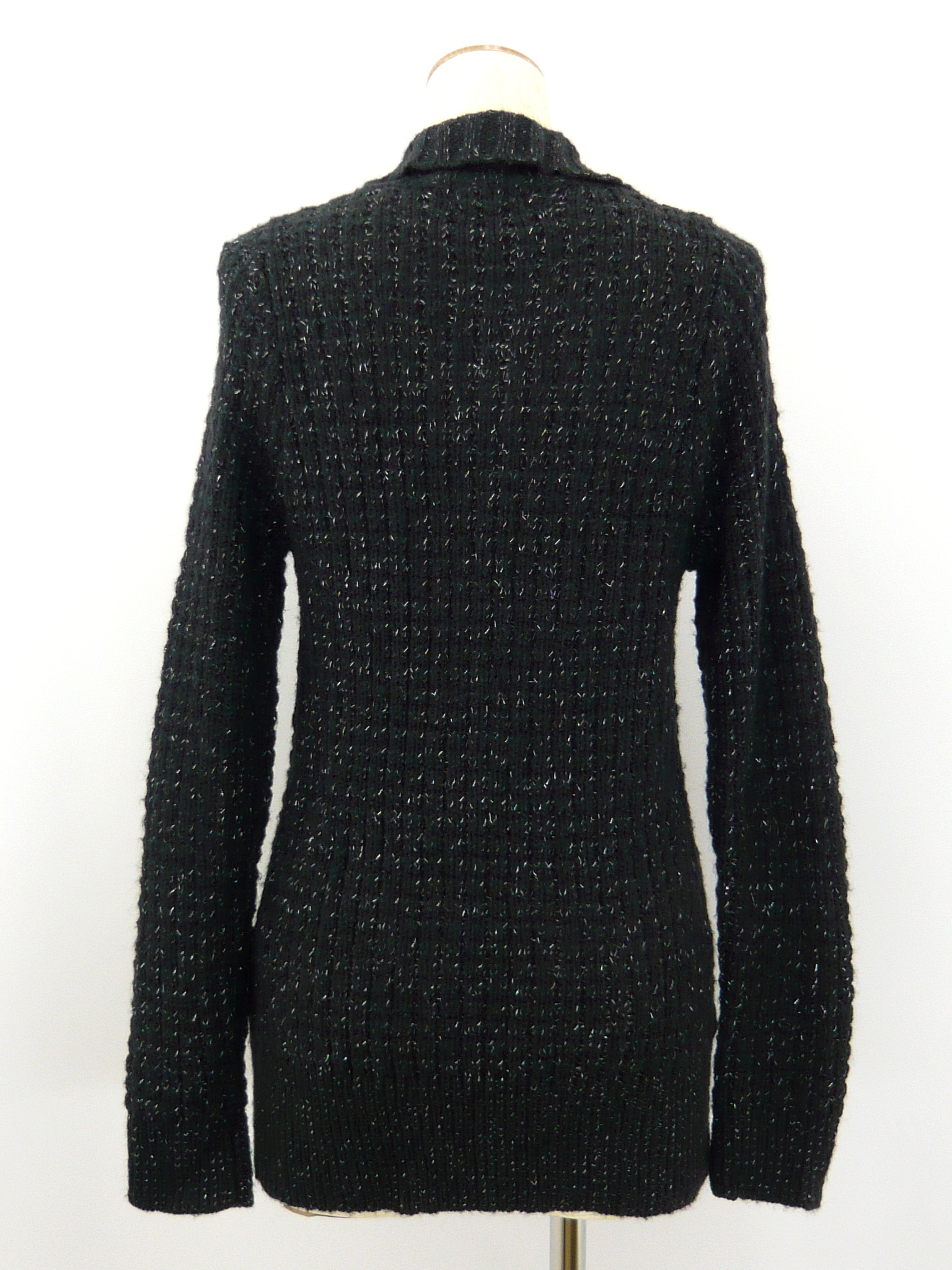 コメント 銀のラメ入り糸でリブ編みされたニットジャケット。