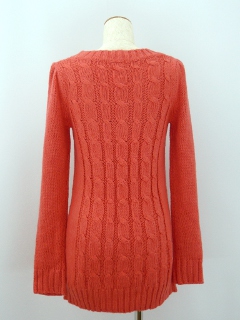 コメント 全体的に縄編み柄の入った丈長のプルオーバーニットです。